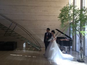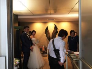ロケーション撮影を終えたおふたりは、そのままエントランスへ。
